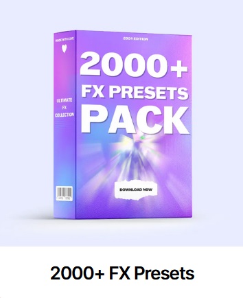 The bundle includes over 70 GB of assets, such as 800+ transitions, 2000+ FX presets, 10,000+ fonts, 3,000+ sound effects, a video editing course, and more.